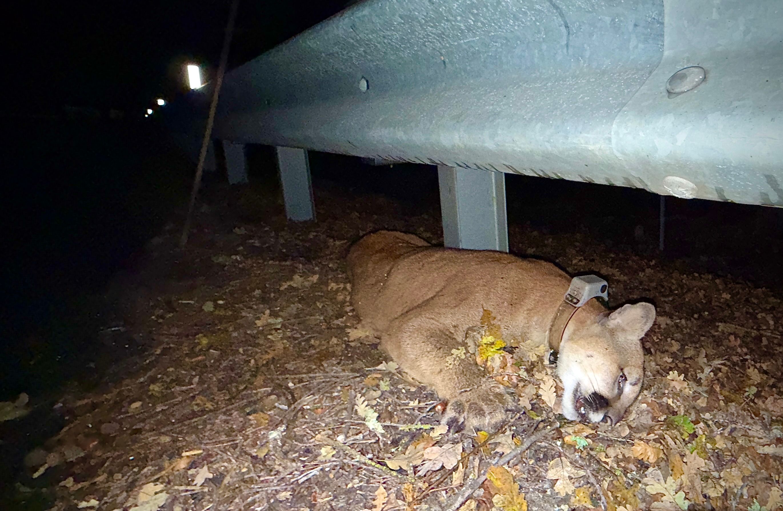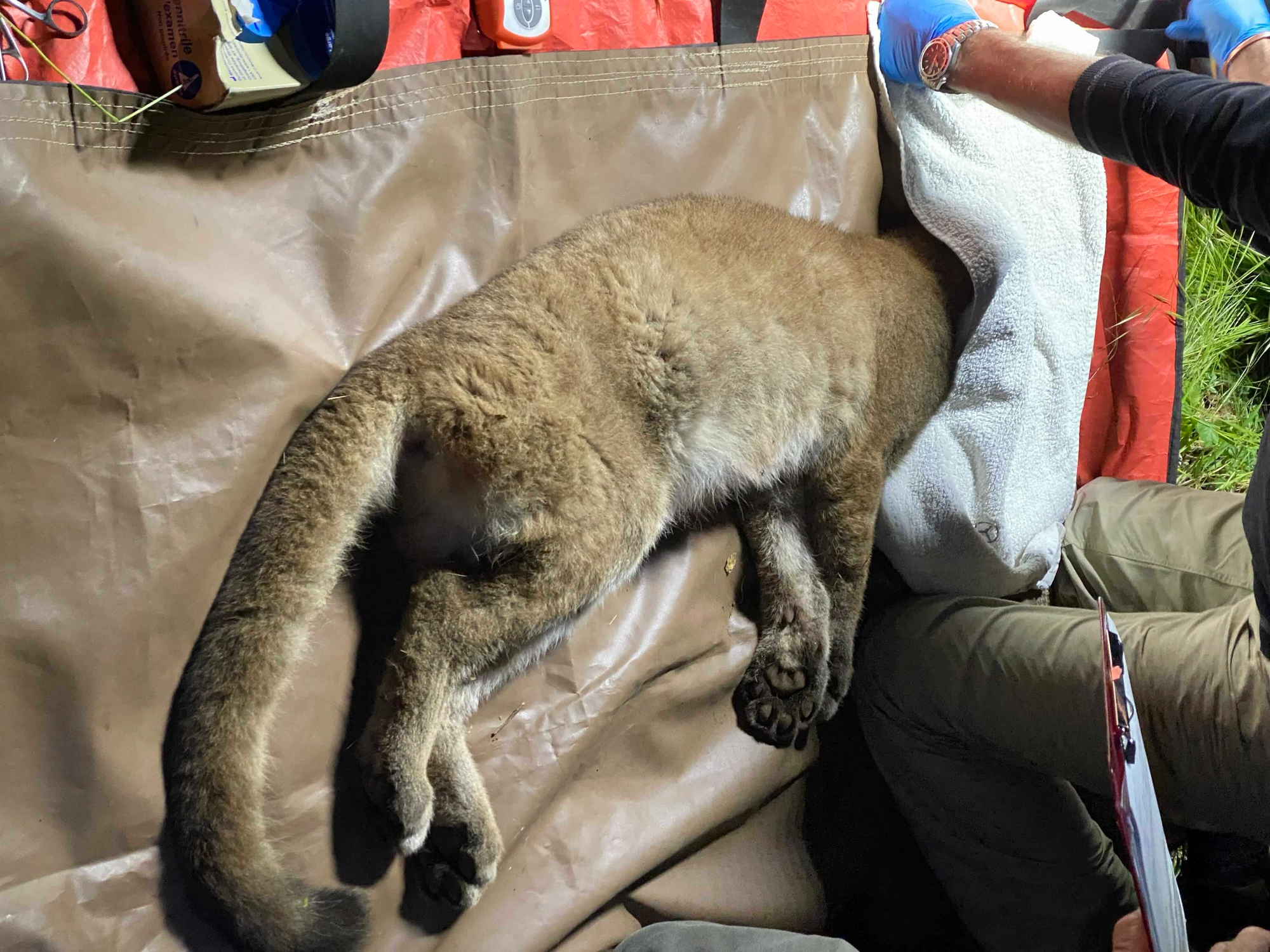 On 18th October Wobbly was spotted in a dry creek bed near the Evergreen Elementary School in Rohnert Park causing local schools to lock down for a few hours. Within an hour a varied group was called in to assess and diffuse the situation—from the Rohnert Park police to True Wild’s Quinton Martins, California Department of Fish & Wildlife (CDFW) personnel, veterinarian Graham Crawford, and Doris Duncan from Sonoma County Wildlife Rescue (SCWR). Once it was established that P26 was unresponsive and staying out in the open, contrary to normal mountain lion behavior, she was darted and taken to SCWR for observation.